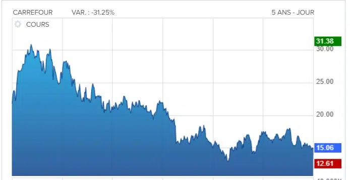 Cours de l’action Carrefour pendant 5 ans :