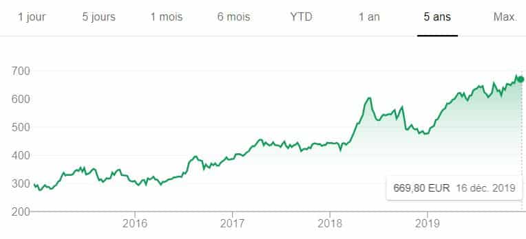 Son prix continue d’augmenter régulièrement ces dernières années, notamment avec un très bonne année 2019 qui aura permis pendant le cours de passer d’environ 200 € à plus de 260 €.