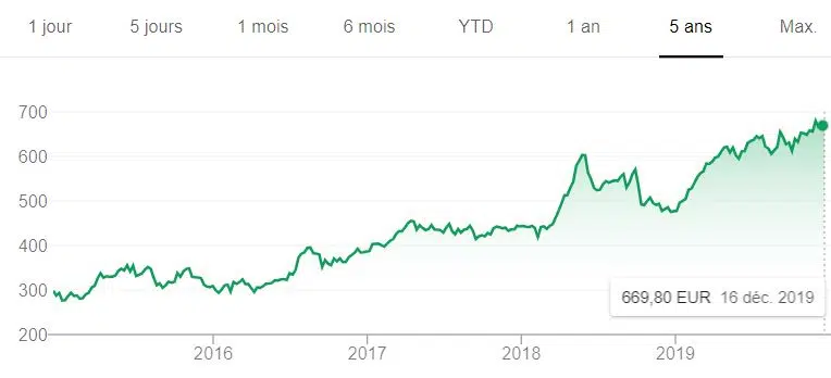 Cours de l’action LVMH pendant 5 ans :