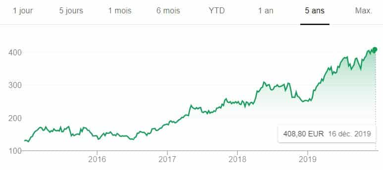 Cours de l’action Hermes pendant 5 ans :