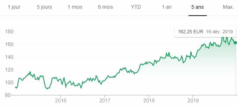 Cours de l’action Air Liquide pendant 5 ans :